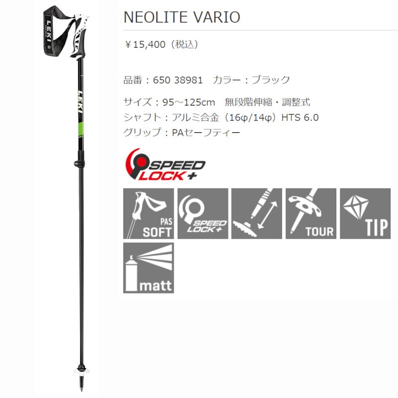 レキ 伸縮ポール 2022 LEKI NEOLITE VARIO Black 95-125cm ネオライト ブラック スキー ストック アルミ合金についてつぶやく