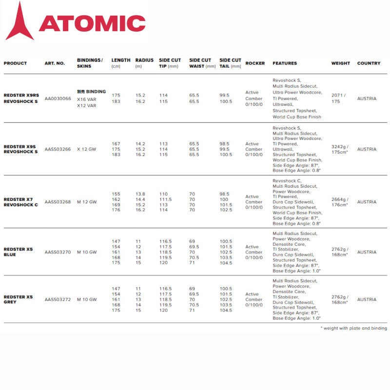 アトミック スキー板 2025 ATOMIC REDSTER X9S REVOSHOCK S + X 12 GW デモ 技術選 ミドル ラディウス ビンディングセット